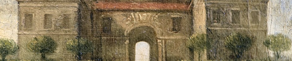 There is an interesting painting by G. B. Passeri in the window of Apolloni in Via del Babuino. It shows the ‘ottobrate’ (autumn festival) at a villa outside Rome, with a view of Rome in the distance. It shows two important components of a villa: the portal in the garden wall, ultimately derived from Serlio, and the main casino. It remains to be seen whether these are identifiable, or whether it is wholly imaginary. The casino has a passageway through the centre and two symmetrical wings, each with a tower. The passageway through the centre is suggestive. Most Roman villas were designed this way, but some, like the Villa Catena, Poli, began life as fortified buildings straddling a road, or indeed a crossroads. This situation can still be seen today at Isola Farnese. At Villa Catena they rerouted the road. In this case the ascent is steep, but your never know.