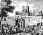 - Fig. 12. Porta Pia, counry facade, detail from a print by Giuseppe Vasi, 1744.