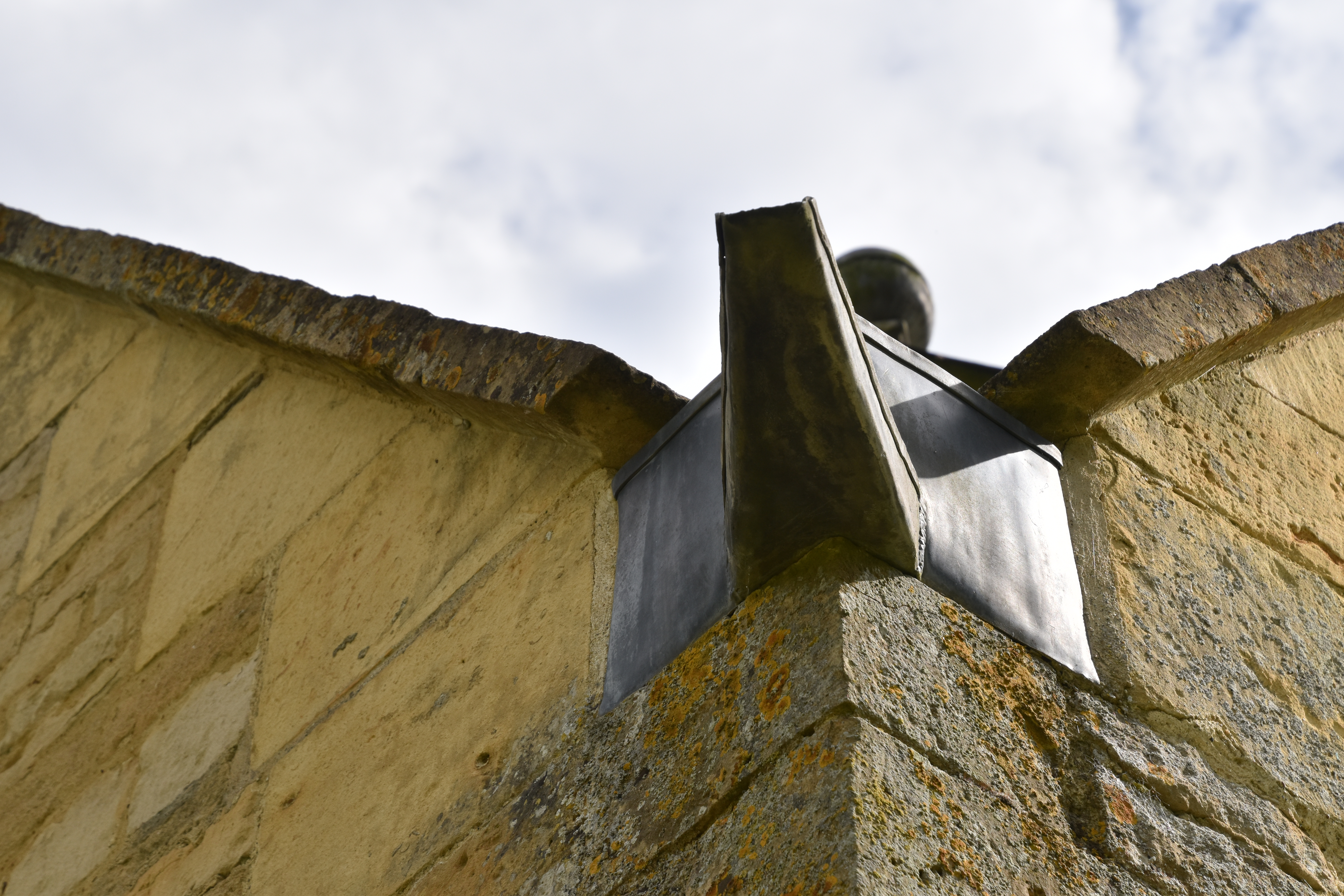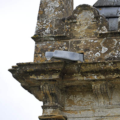There are similar spouts on the Montacute pavilion, but they look like later additions that have been cut into the guttering. (Fig. 4). The waterspouts on this dovecote are clearly part of the original design, even if they have been renewed, so perhaps the Montacute spouts were originally here.