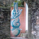 - Fig. 3. Portmeirion, painted angel, from a distance, obliquely.