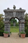 Oberon’s Palace, based on a stage design by Inigo Jones, is perhaps the finest garden fabrique of recent times. Here, however, I want to concentrate on the two arches that face each other on two sides of a square lawn, on the third side of which is Oberon’s Castle, and their construction. One is based on an Inigo Jones design that in turn owes much to Michelangelo’s Porta Pia. The Porta Pia is now the model for the inside of the Montacute Gateway Arch (somehow Serlio got pushed to one side), so the Bannerman’s take on this design is of particular interest. The other is rather simpler and is apparently based on an archway that appears in the Daniel Mytens portrait of Thomas Howard’s sculpture gallery (National Portrait Gallery, on loan to Arundel Castle) but I can’t see it in reproductions: it must be something tiny in the distance. It is also based on a drawing by Jones identified as the ‘gateway at Newhall, Essex’.[2] This the Bannerman’s call the ‘Inigo Gate’.