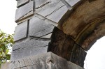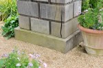 The Bannermans describe how they got the idea for this use of green oak from looking at a cork grand tour model of the Temple of Concord at Agrigrento ‘which we had bought in the visitor’s car park’ at Highgrove, Prince Charles’ garden, when they were designing the two temples in the stumpery there.[3] That is, the idea of using slabs of wood as if they were blocks of stone. This is certainly the way those temples work, but to carry the idea through logically, the Inigo Gate ought to have been assembled of blocks of wood like building blocks, rather that a few huge blocks with the divisions between ‘stones’ made with a router. The identity of each slab is obscured, rather that being made explicit as at the Highgrove temples. But this in fact makes a point about illustrates the nature of ashlar rustication, which develops easily from being individual blocks with their edges shaped to make the distinction between blocks explicit, to a surface that is decorated with channels that represent the joins between blocks.