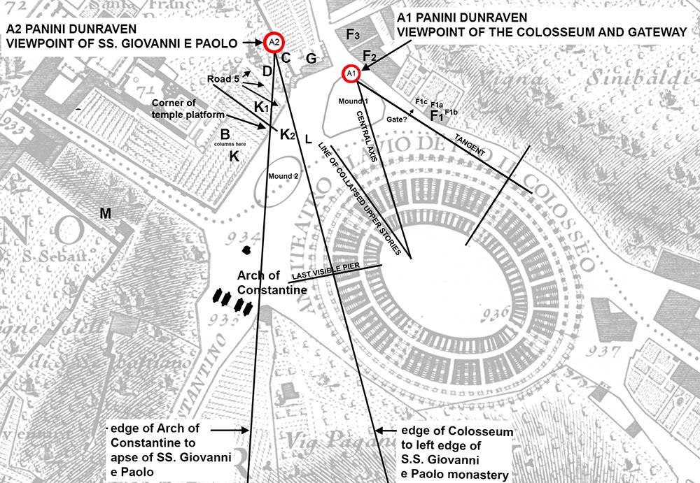 Fig. 3. Nolli map, with sightlines of the Dunraven Panini, closer view.