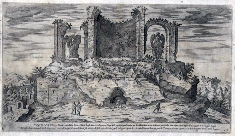 Fig. 3. Etienne Du Pérac (1525–1601), Vestigi del castello dell’acqua Marcia, 1575.