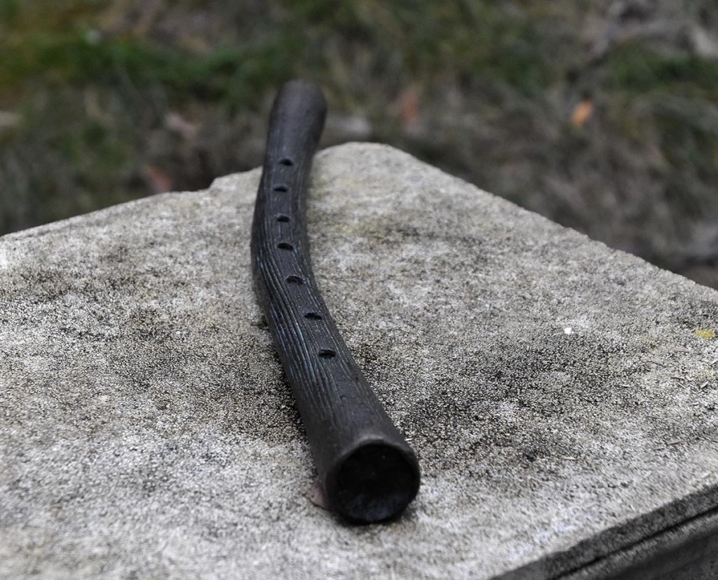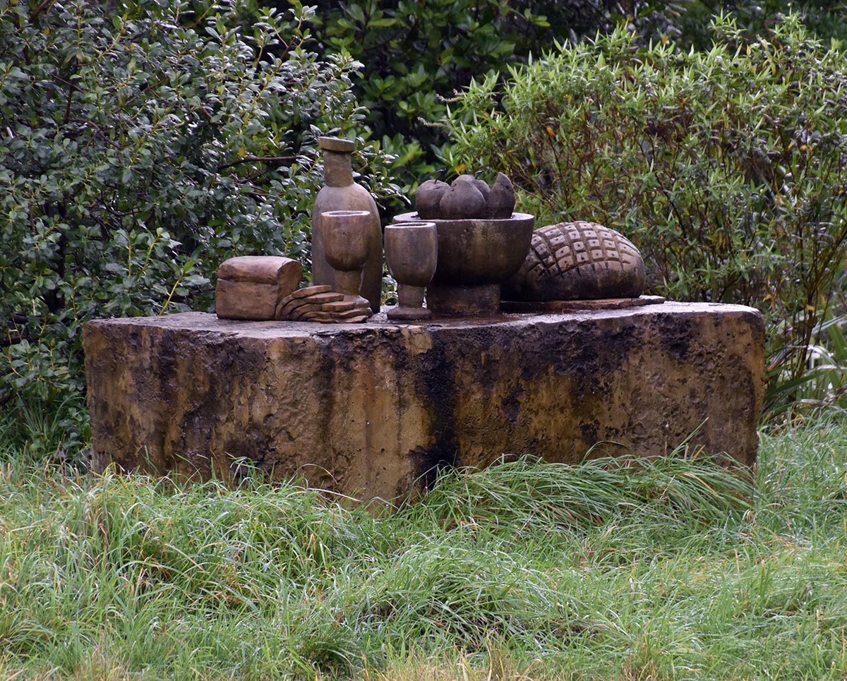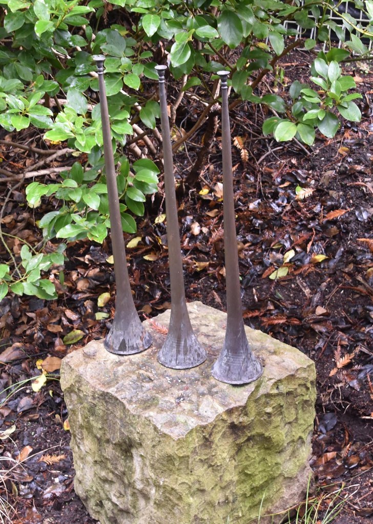 The whole garden, in fact, has many such mis-cues. When you see the three trumpets that catch your eye at the beginning of the itinerary (Fig. 7), you read them as flutes, because you are primed to expect a Magic Flute theme. The explanation that they refer to the trumpet fanfare at the start of the Magic Flute is just too obscure an allusion without either signage or a deep knowledge of the opera. Conversely, when a bronze flute does appear it seems too literal (Fig. 8).