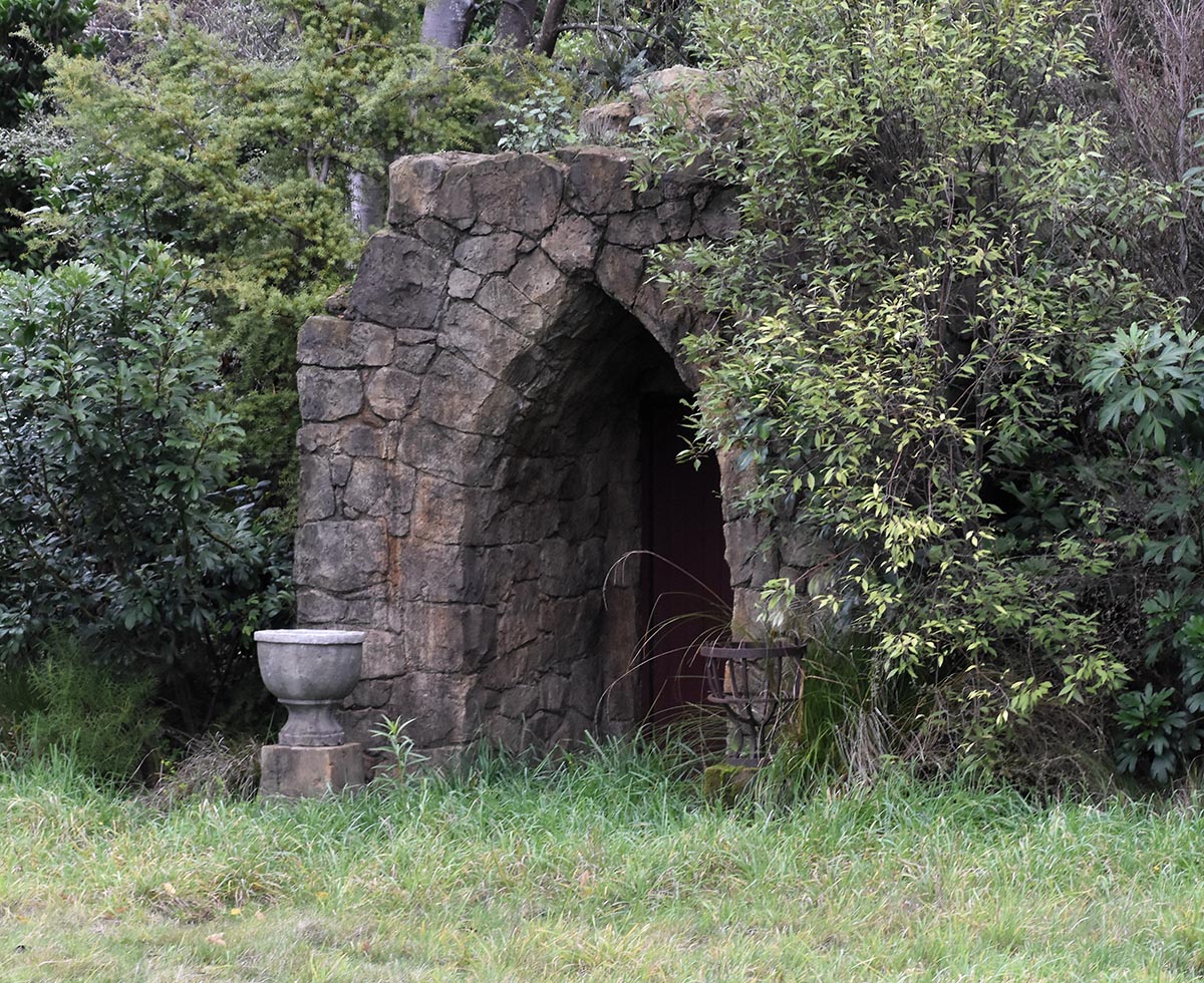 I am not sure that having the names of the doors in German is helpful (Fig. 22). To be sure, their being in German creates the illusion that one is actually in a German garden, perhaps Wörlitz. Any garden that recreates an historical garden type necessarily has a dimension different from the original. In eighteenth-century Germany such a garden as this would simply have been another picturesque garden. In twenty-first century New Zealand the primary meaning of such a garden is found in its references to the eighteenth century. This adds an additional layer to the interpretation. But for the layer of meaning below this the inscriptions need to be immediately intelligible. I like Latin inscriptions, because they are not immediately intelligible and, being in Latin, allude to another world. But I am careful to provide disceet translations nearby. In this case, however, the viewer needs to immediately understand that these are gates of Reason, Wisdom and Nature. As such they could be understood as alluding to Elightenment ideas generally, but also to the Magic Flute if desired.