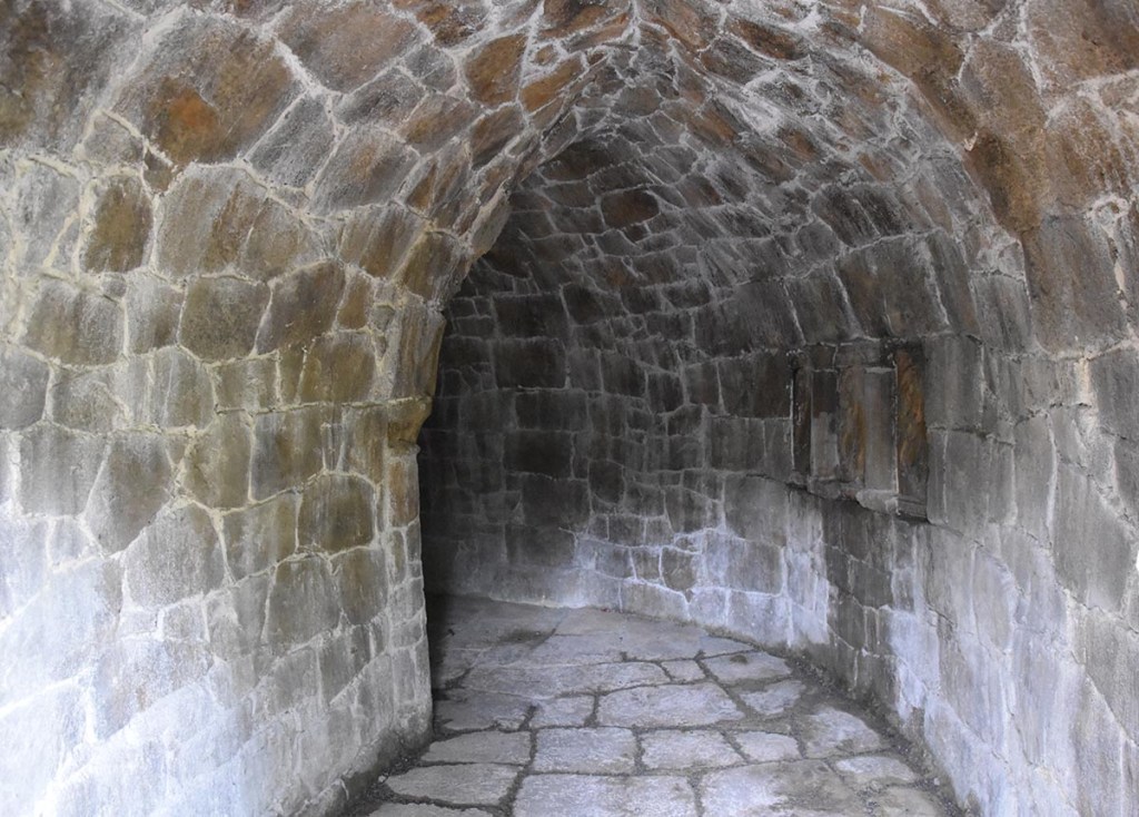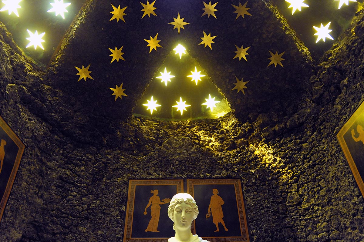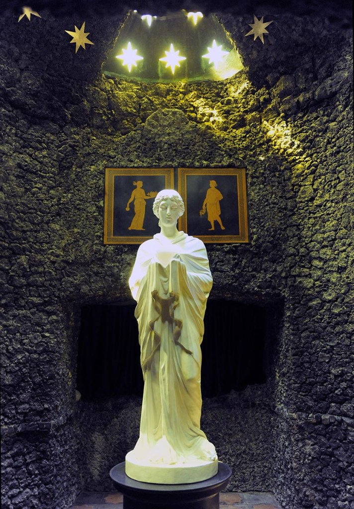Once into the passage there needs to be something at the middle or end of it, but at Hamilton there are only the maenad reliefs (Figs 12, 14, 30) and the the ‘hall’ (actually a meadow) after you emerge. More exciting would be a feature like the Cabinet of the Night with its statue of a Vestal Virgin lit by stars within the artificial Mount Vesuvius at Wörlitz (1788-94) (Figs 31-32).[11] The effect of entering the bowels of this (artifical) mountain (Lord of the Rings Moria again) and discovering this statue is magically mysterious and this, after all, is the intended effect of the Hamilton Picturesque Garden.