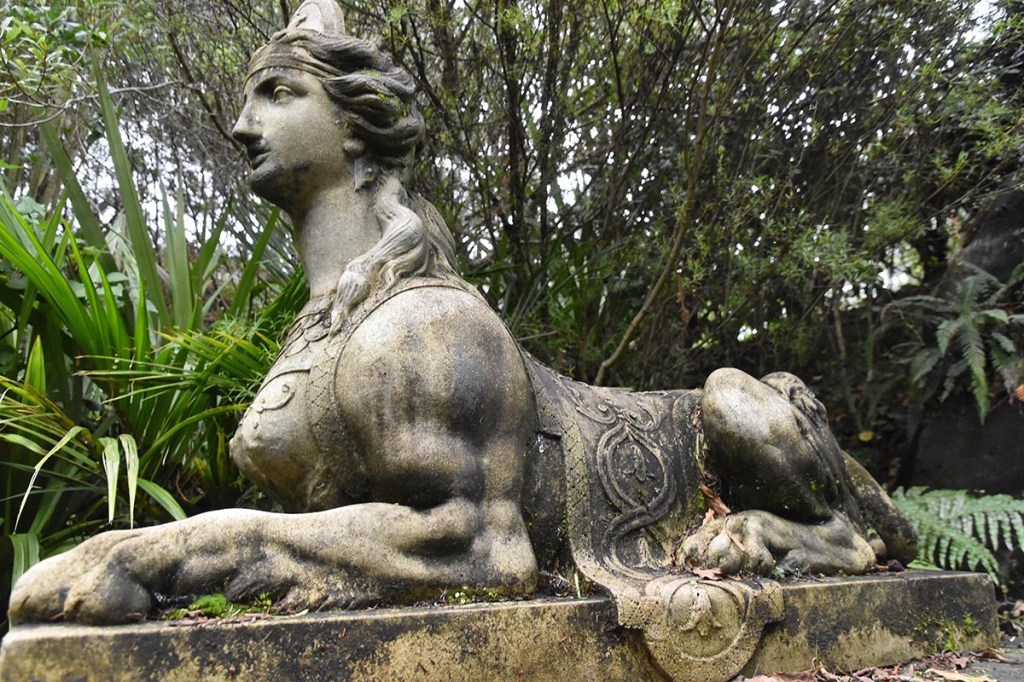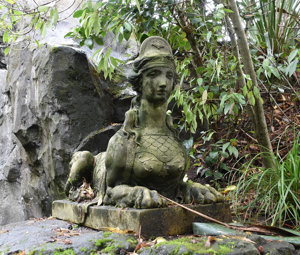 Fantasy literature often draws on this source, such as the children’s story The Neverending Story, which, in the film version (1984) has a pair of sphinxes guarding an entrance passage (Fig. 28). The Egyptian sphinx, by contrast, is not associated with this story, has a male face and is more benevolent. The sphinxes at Hamilton function in a similar way to the Theban sphinx as reimagined in the Neverending Story because they are placed on either side of a cutting and you have to pass between them (Fig. 29).