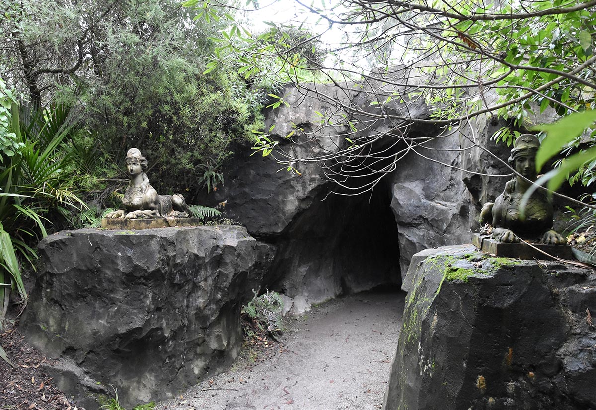 [7] Hamilton Gardens website: ‘Within the dark passage Tamino and Papageno undergo their first test “to resist in silence the guiles of women”. Three rather frisky looking women are represented in relief sculpture on the wall.’