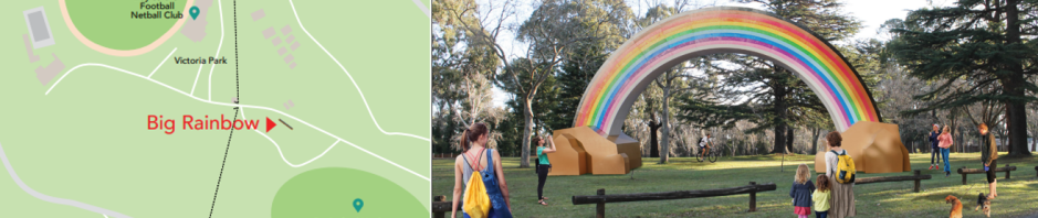 [2] From the Hepburn Shire website: ‘How was Daylesford selected as the new home of the Big Rainbow? After receiving thousands of submissions, Tinder worked in close collaboration with their panel of community advisors and experts within the LGBTQIA+ and First Nations communities to curate the shortlist of four nominated towns to possibly house the Big Rainbow. / From these four towns, the public then submitted over 16,000 votes to help find the leading town – making Daylesford the new home of the Big Rainbow. They also worked closely with Council to ensure there was an existing history of support for the LGBTQIA+ community and desire to be the home of the Big Rainbow. It’s important to ensure that the Big Rainbow is loved, respected and taken care of at its new home.’